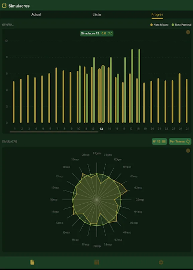 - You will be able to review the subjects you do best and worst and compare your grade with the average grade of the other users.