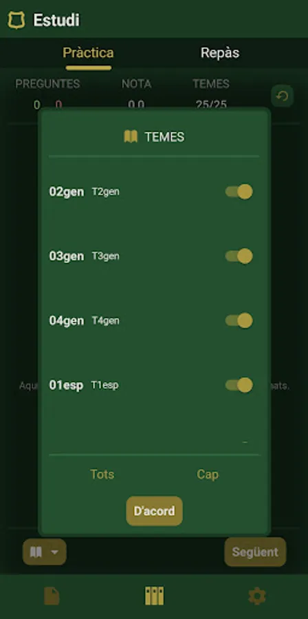 - You will receive a mock exam with 80 new questions every fortnight, prepared specifically for the preparation of the knowledge exam for access to the body of Rural Agents of the Generalitat de Catalunya.