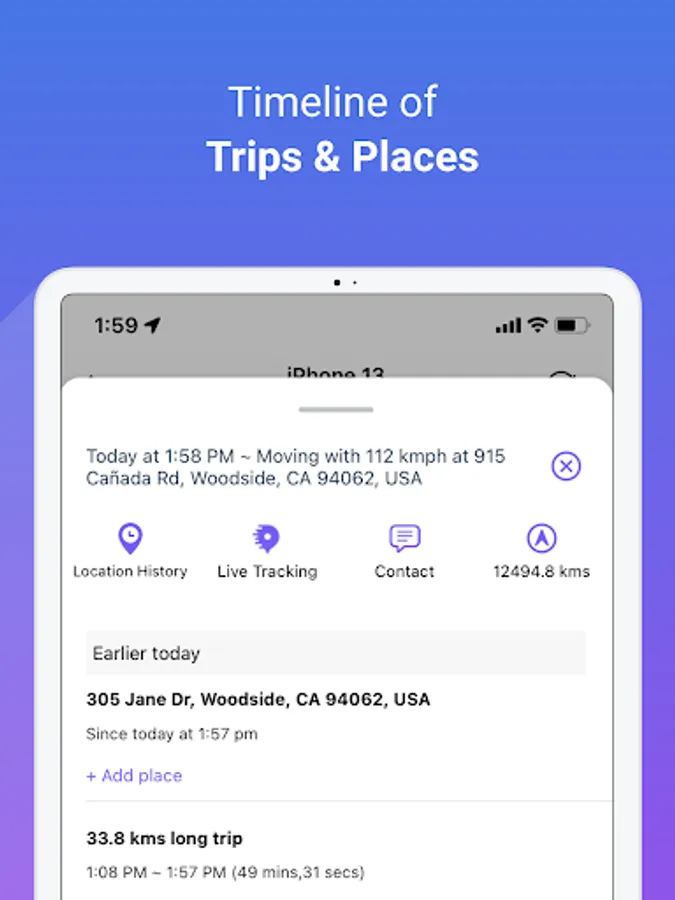 • Detailed location history with trips and places visited by your children.