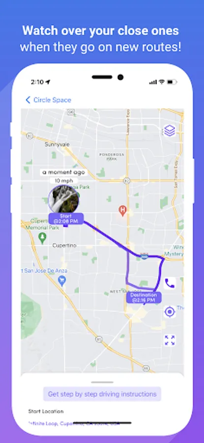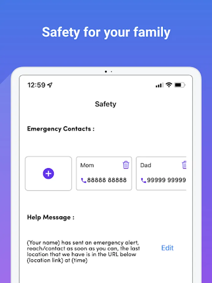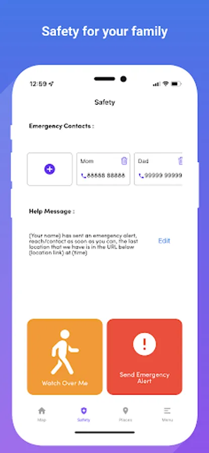 • Real-time location sharing with ETA from selected destinations for safe trip tracking.