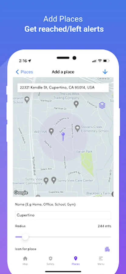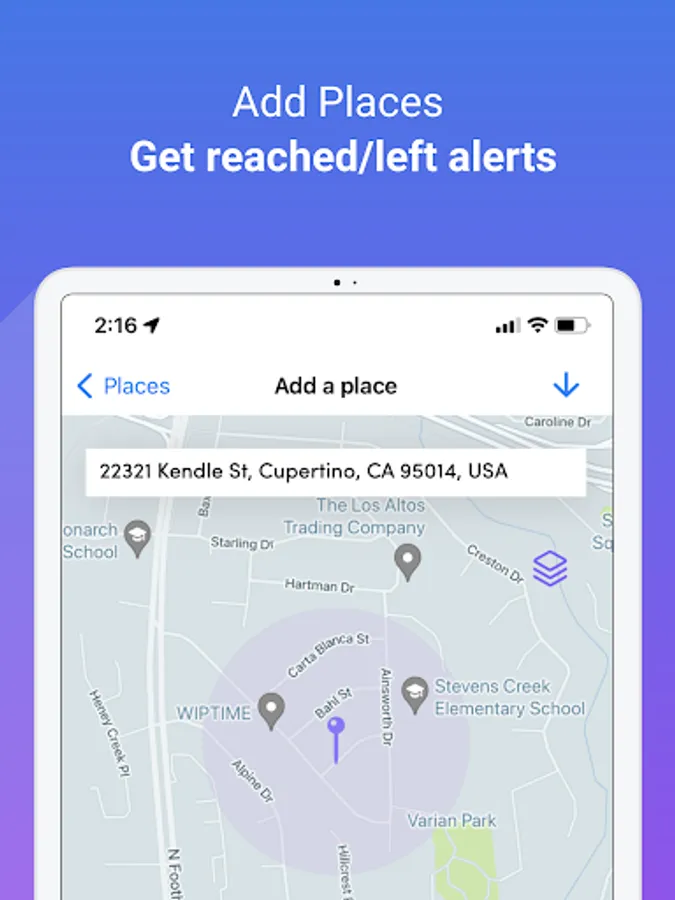 • Unlimited places to receive notifications when kids enter or leave specific locations.