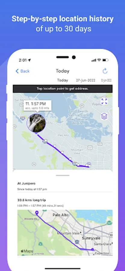 • Up to 30 days of location history.