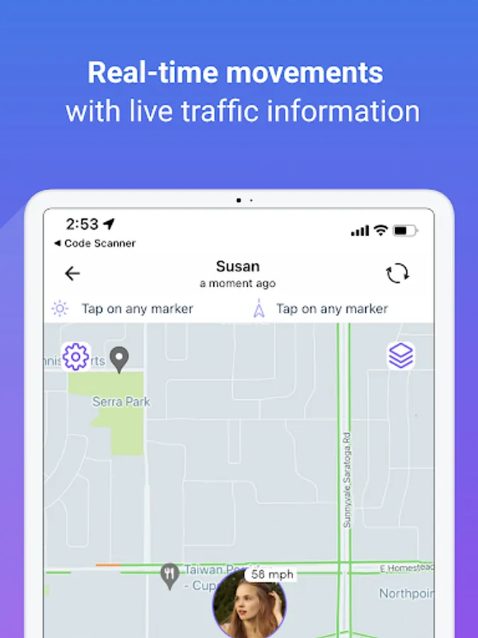 • Real-time traffic updates on maps to anticipate possible travel delays.