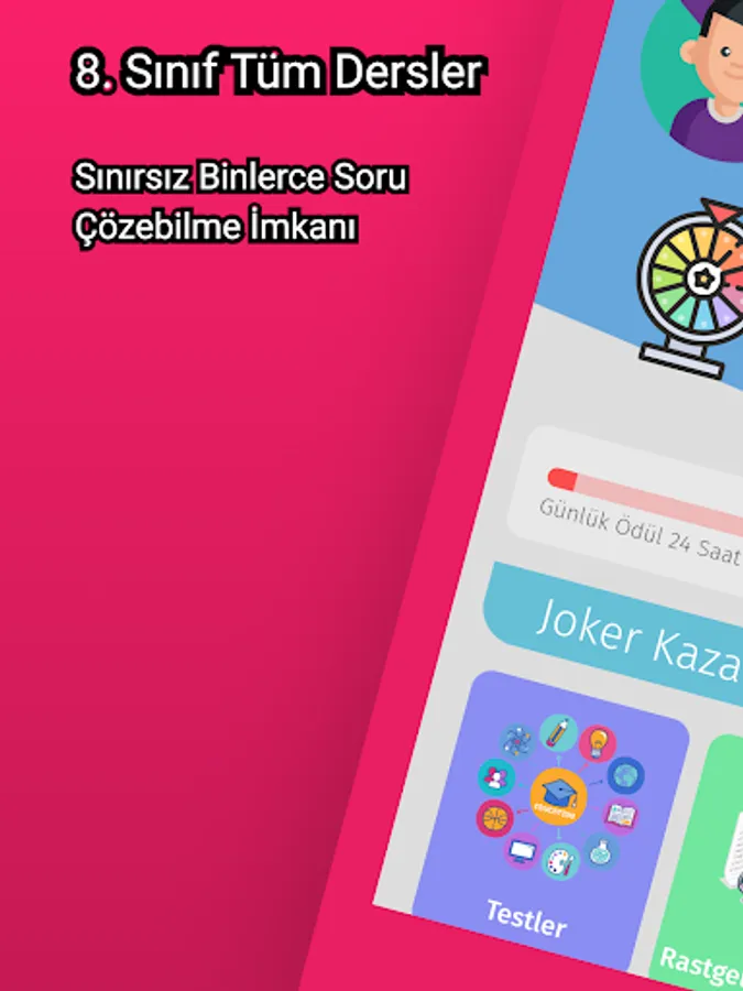 With 8th Grade Lectures All Lessons, you can solve thousands of questions as much as you want, you can follow the subject from the lecture section on the subjects you are stuck with, or you can use one of the 2 different wildcard rights. 8th Grade Tell a Topic You can take part in the Leaderboard with the points you earn from the questions you have solved in all the lessons, and you can also discuss the questions you are stuck with in the question discussion section for discussion with your friends.