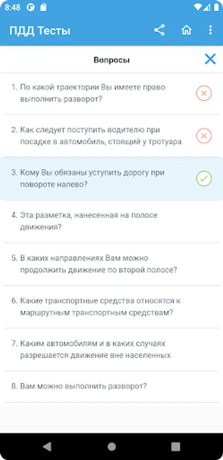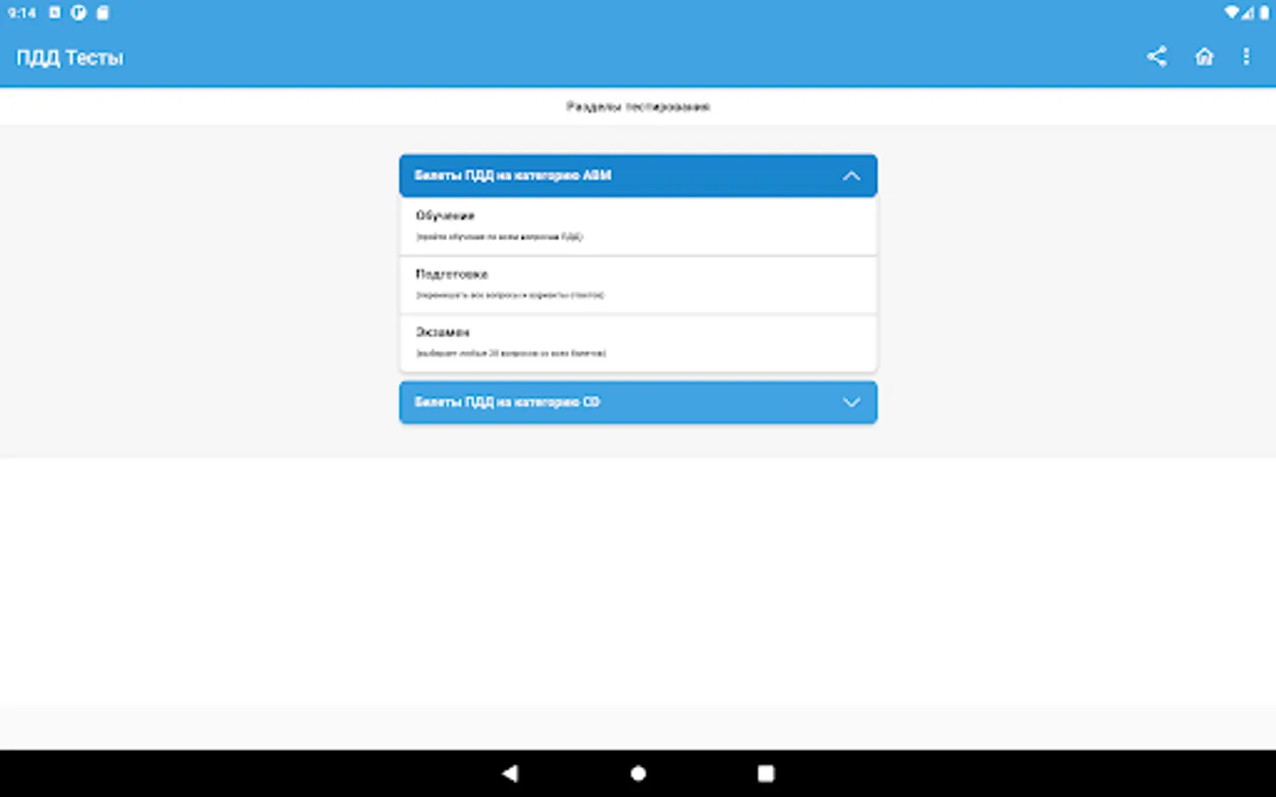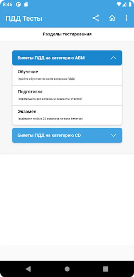 This application was developed to prepare for a theoretical exam on knowledge of the Rules of the Road (SDA) for the right to drive vehicles and obtain a driver's license in the bodies of the State Inspectorate for Road Safety of the Ministry of Internal Affairs of the Russian Federation (State Traffic Inspectorate or GAI (GIBDD).
