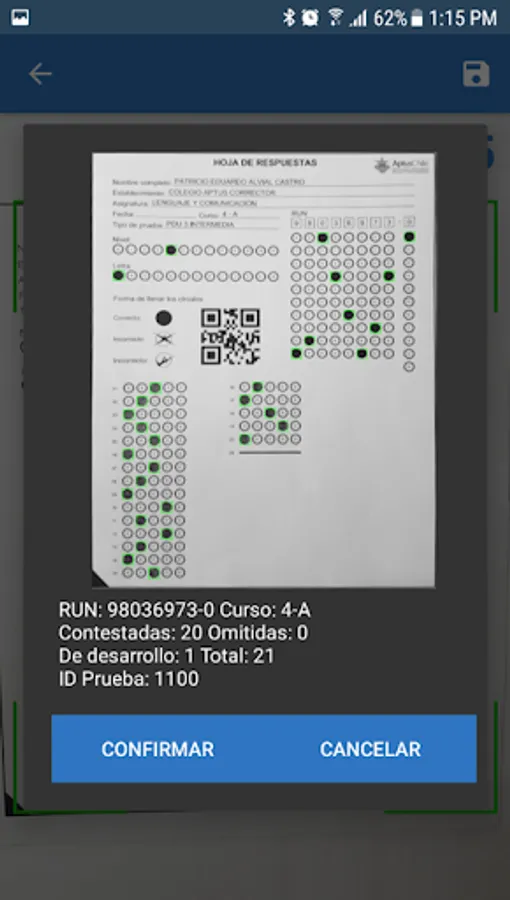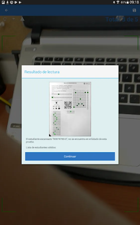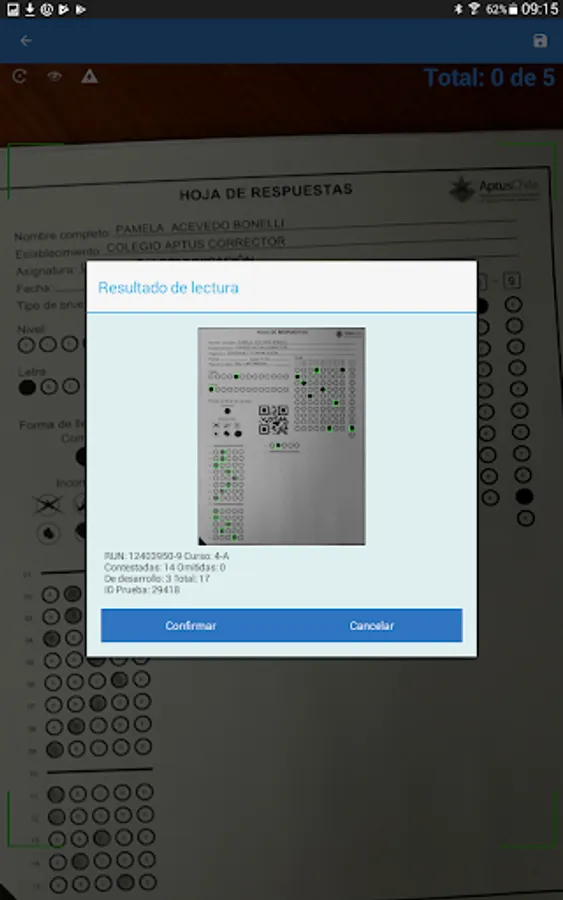 3. Scan answer sheets with the camera of your device and get the results immediately on the Aptus platform