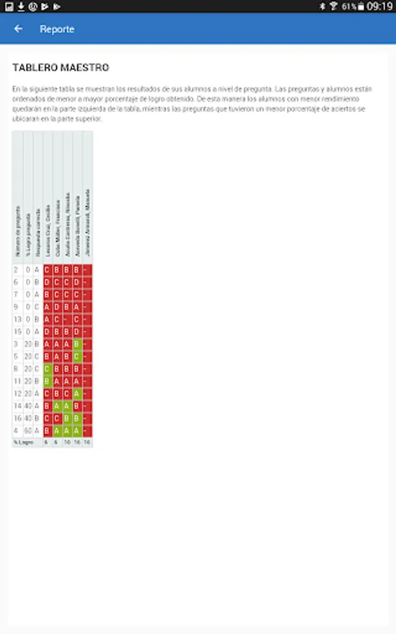 By hiring the services of assessments Aptus digital format, you can make the correction of our tests with Aptus Corrector very easily and quickly obtaining detailed reports of your students instantly.