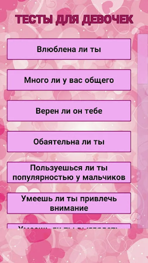 Install the application and find out their strengths and weaknesses, and how to find a guy, what impression on others, and ... something about love! You will learn to communicate with guys understand how to build relationships with friends and love to turn setbacks into victories.