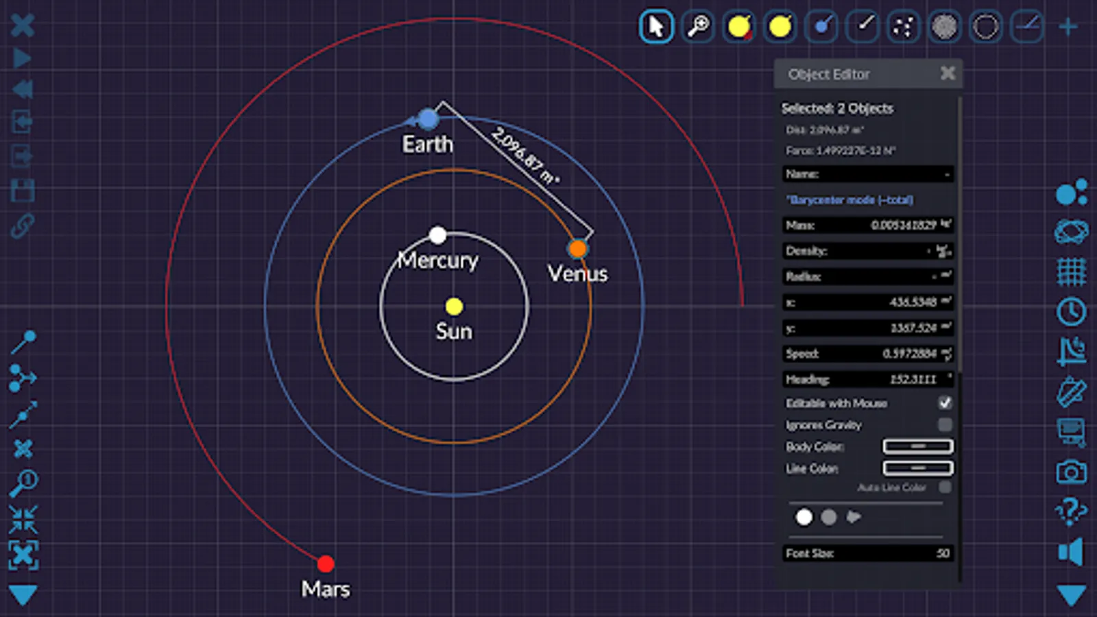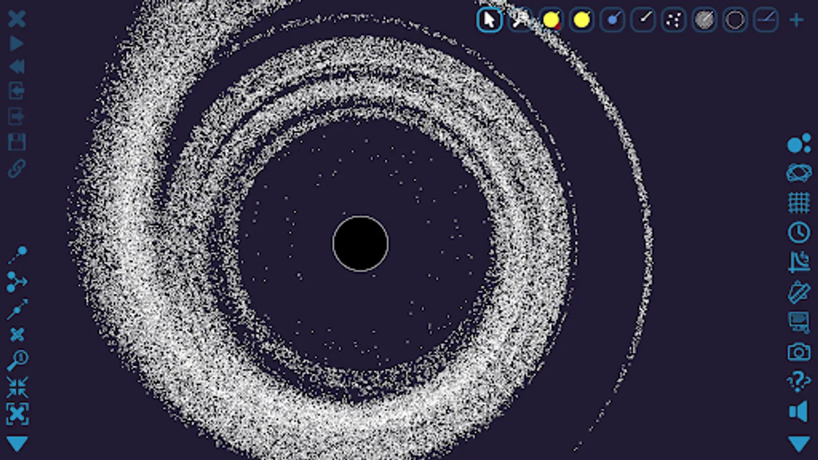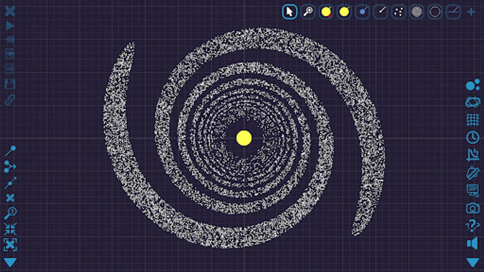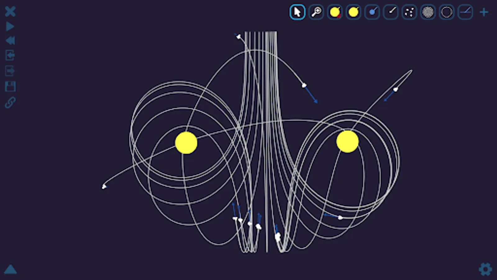 Gravity Simulator lets you control one of the most basic forces in the universe. Launch stars and planets, and watch as gravitational patterns unfold. Peaceful conic sections, dancing spirals, wonderful spirographs, and plenty of utter chaos will appear before your eyes.