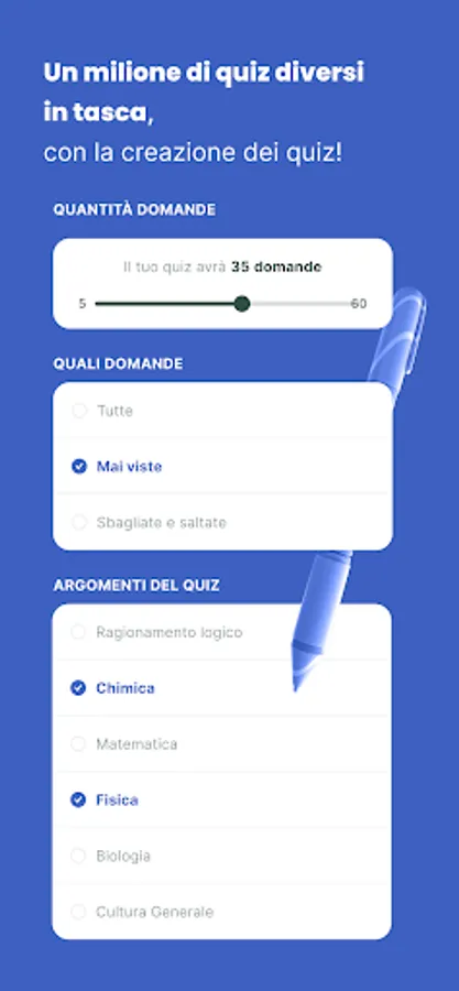 The constantly updated mobile simulator to train you on the quizzes of the entrance tests to medical and health faculties: with TestCorner you can play infinite combinations of mixed or single-issue quizzes and carry out the simulations of previous years.