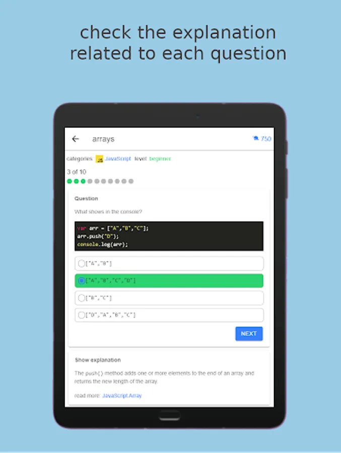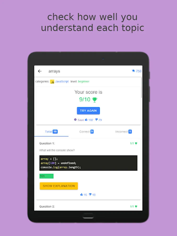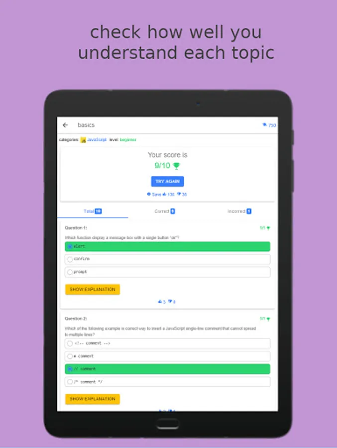🌟 Designed for both beginner and experienced JavaScript programmers, our app welcomes all learners seeking to expand their JavaScript knowledge.