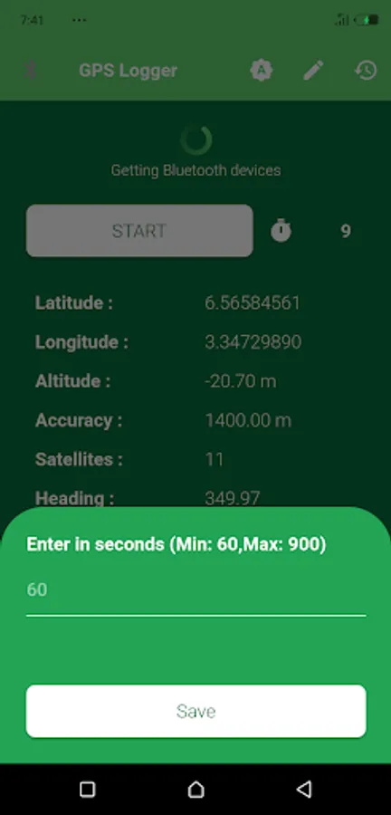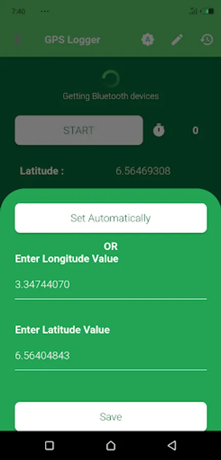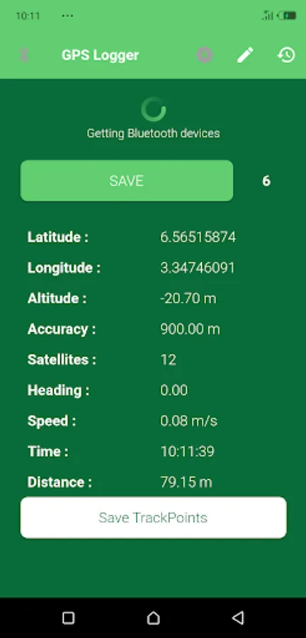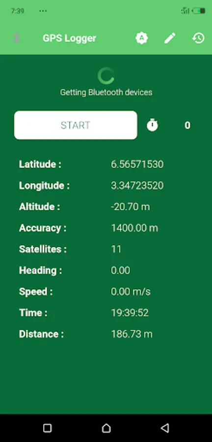 This is a GPS logger app written in Flutter that allows users to log their current location's latitude and longitude. The app provides the ability to save location data on the phone or share it as a .txt file. The app also has the capability to communicate with an ESP32 Bluetooth device.