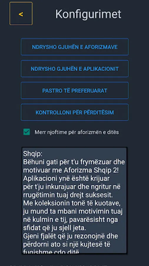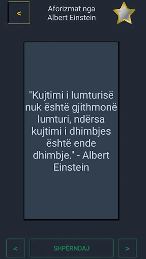 Pra, pse të presim? Shkarkoni aplikacionin tonë sot dhe filloni të krijoni Aforizma frymëzuese dhe të bukura që do t'ju ndihmojnë të dalloheni nga turma. Me Aforizmat tona të kategorizuara, imazhet e ndashme dhe aftësitë jashtë linje, do të keni gjithçka që ju nevojitet për të krijuar një përvojë vërtet unike.