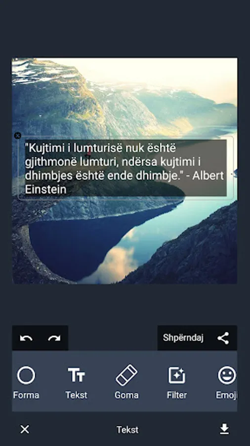 Dhe me redaktuesin tonë të thjeshtë të fotografive të Aforizmave, ju mund t'i ktheni ato Aforizma në imazhe të bukura dhe të ndara që do t'i bëjnë miqtë dhe ndjekësit tuaj të vënë re. Plus, për shkak se aplikacioni ynë funksionon pa internet, ju mund të krijoni dhe të ndani kuotat tuaja kudo, edhe kur nuk jeni i lidhur me internetin.
