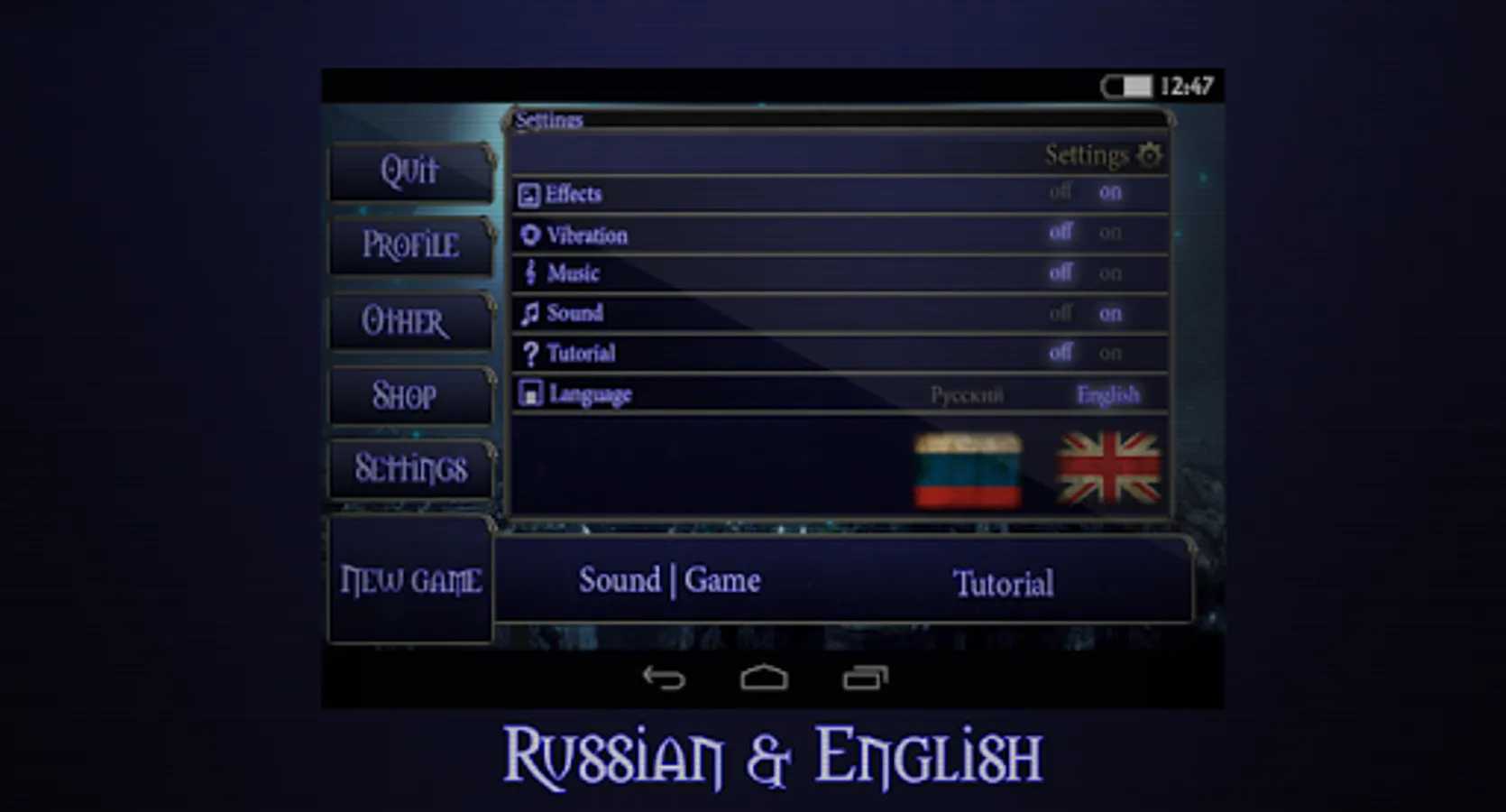 Features of the game: