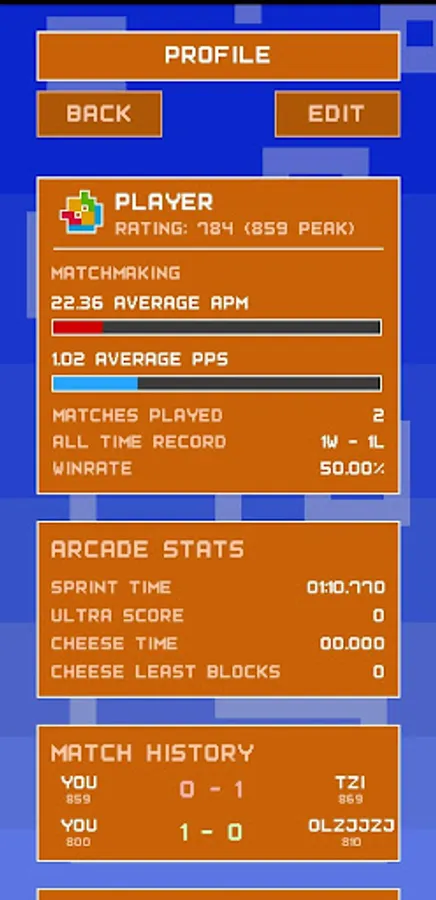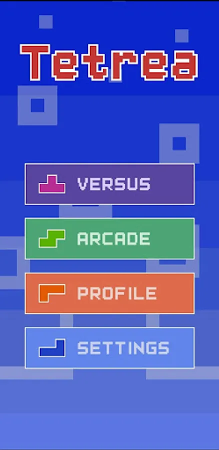 Tetrea is a block stacking game where the player fits shapes together to create and clear lines. It has several game mode including Versus AI, Sprint, Ultra, and Cheese Race. The player can tune their controls in settings and view their statistics on their profile.