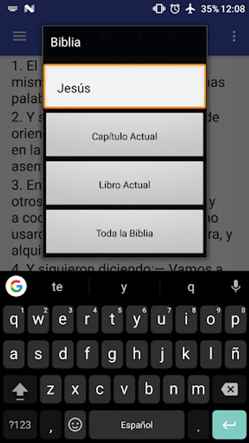 * Puede buscar la palabra que desee en toda la Biblia de una forma muy rápida.