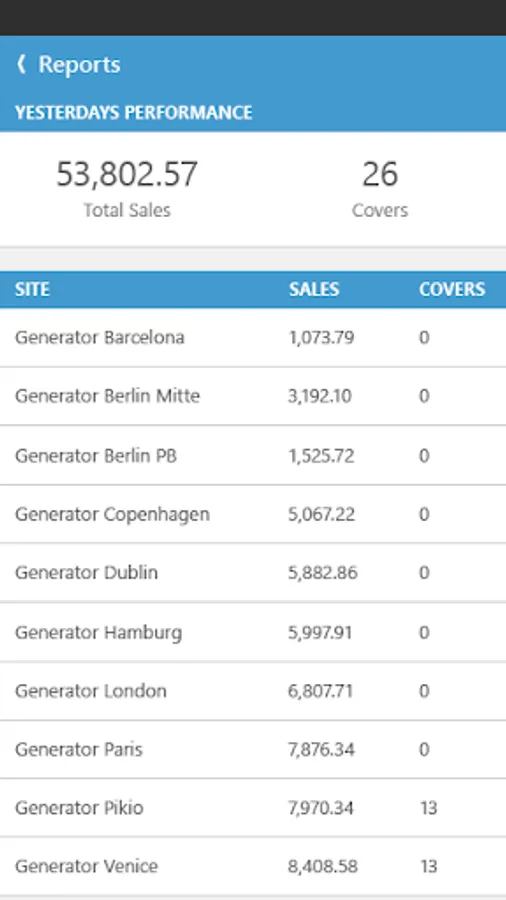 Reporting - Allows users the ability to analyse business performance of their entire estate, selected groups of sites or individual branches with full time period data drill capabilities.