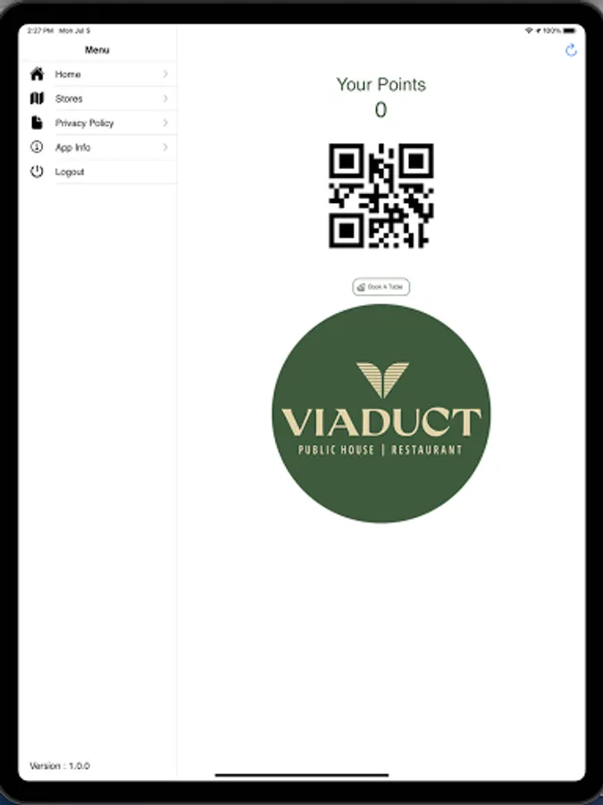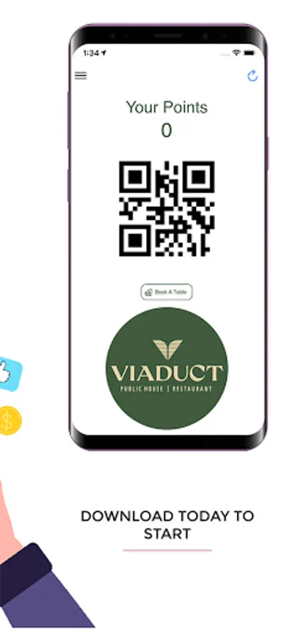 Using the app by scanning the QR code in conjunction with the Tevalis Point of Sale system at Viaduct Restaurant will allow you to earn and redeem loyalty rewards based on your purchases.