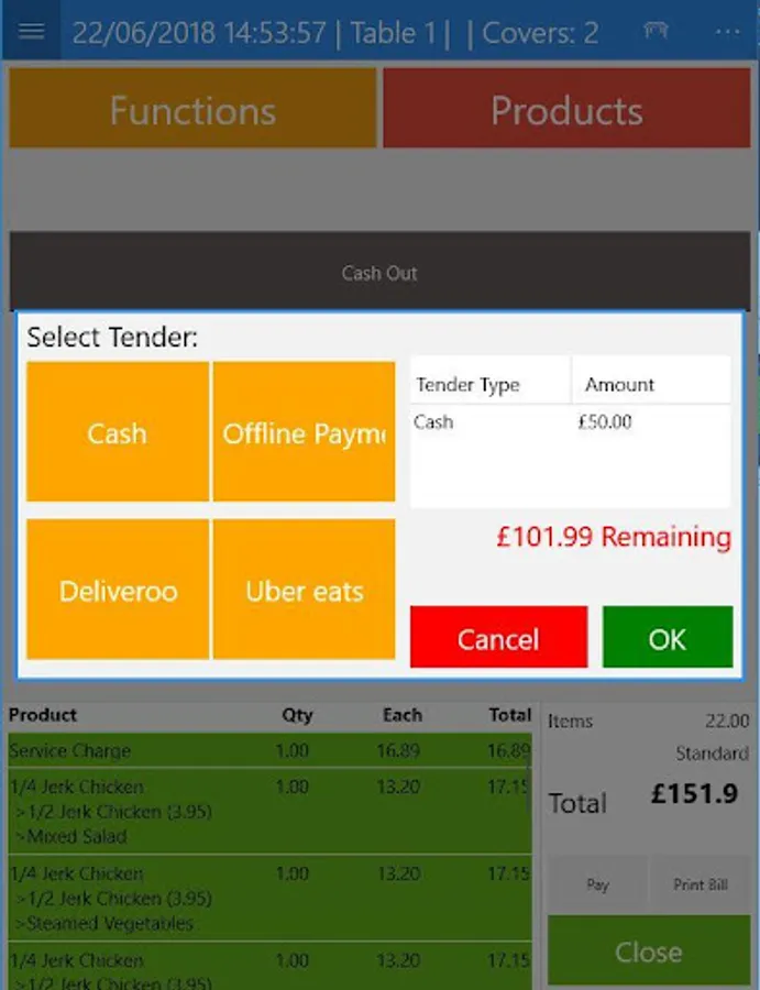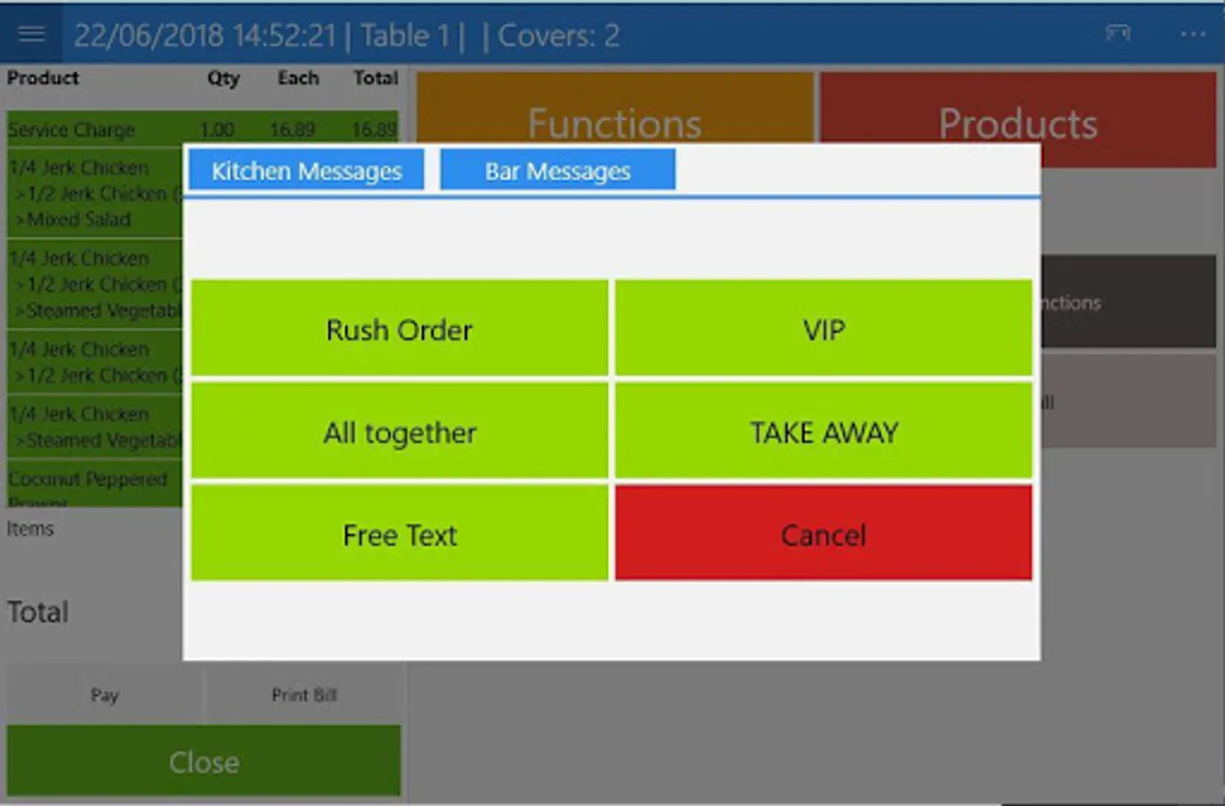 • Take, edit, pay and close orders from the table in question, without having to return to your EPOS