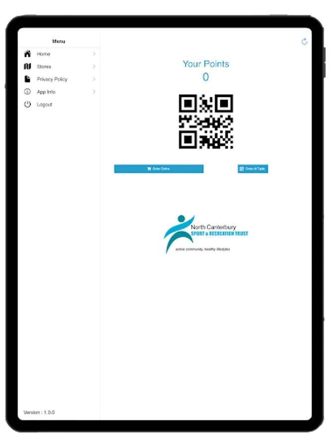 Using the app by scanning the QR code in conjunction with the Tevalis Point of Sale system at North Canterbury Sport and Recreation Trust venues will allow you to earn and redeem loyalty rewards based on your purchases.