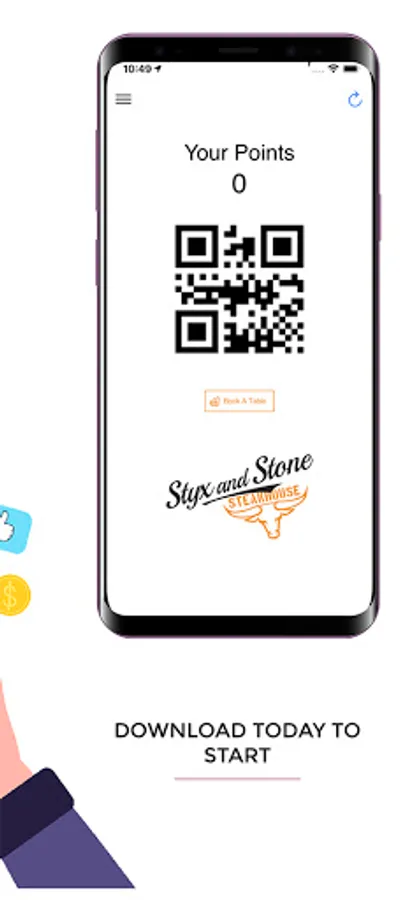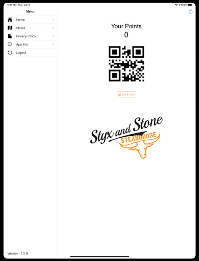 Using the app by scanning the QR code in conjunction with the Tevalis Point of Sale system at Styx and Stone Restaurant will allow you to earn and redeem loyalty rewards based on your purchases.