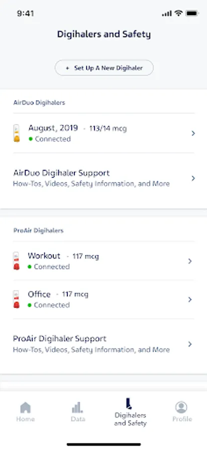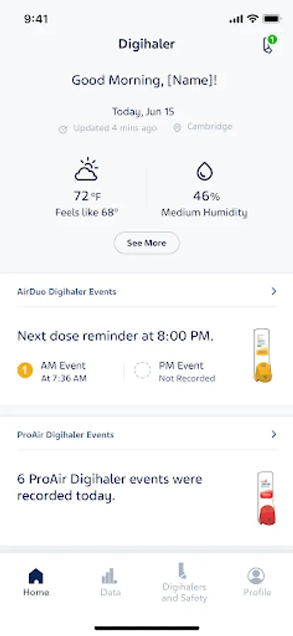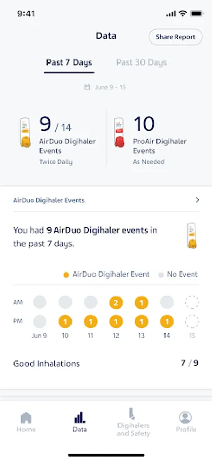 Welcome to your Digihaler® app! See safety information below. This app will help you keep track of your Digihaler events and tell you if your inhaler technique may need improvement. You can also share reports from the app with your doctor or others. When your Digihaler inhaler is connected with your smartphone, data from your inhaler will be transmitted to the app using Bluetooth wireless technology.