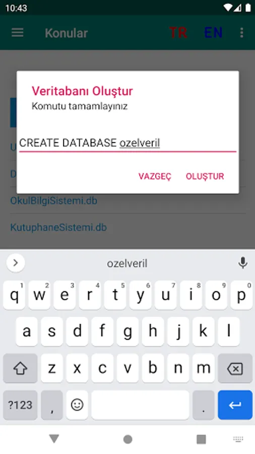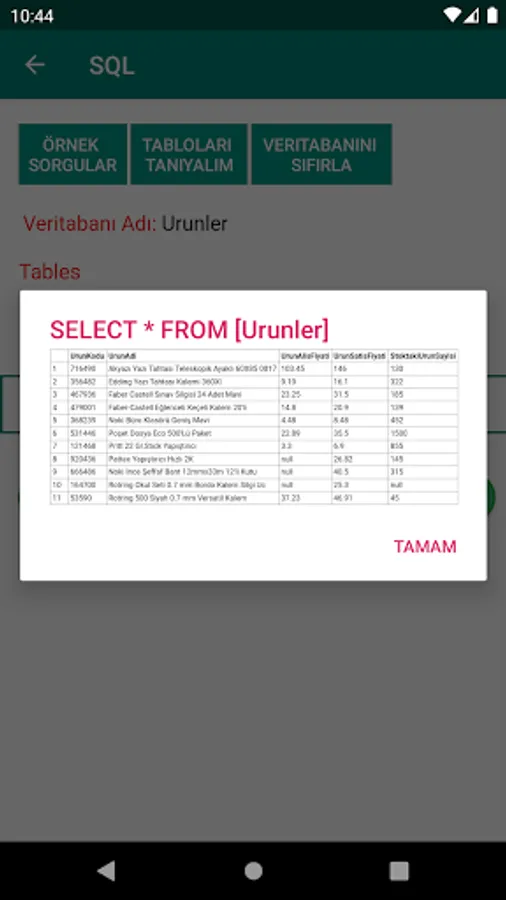 On the MS-SQL query screen, you can write queries as you wish and create databases and tables. You can add unlimited records to databases and query.