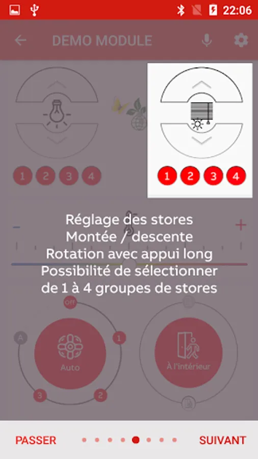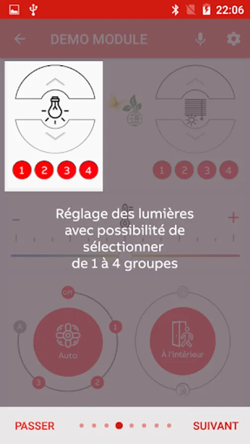 Simply pair up with the nearest presence detector to access settings for air conditioning, lighting and blinds.