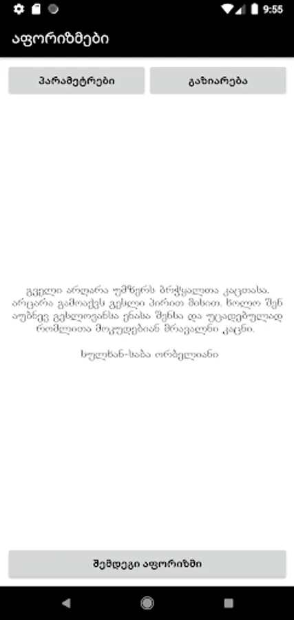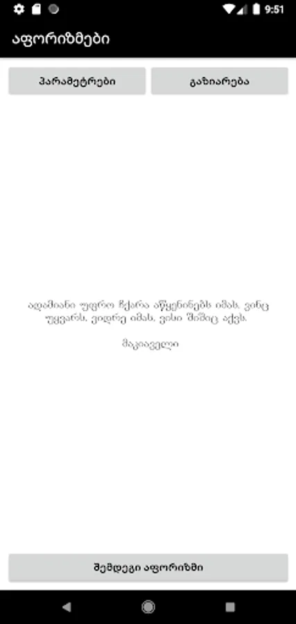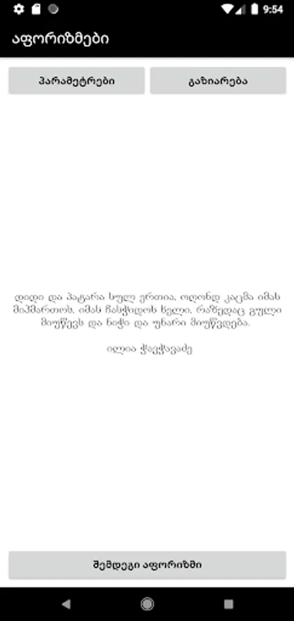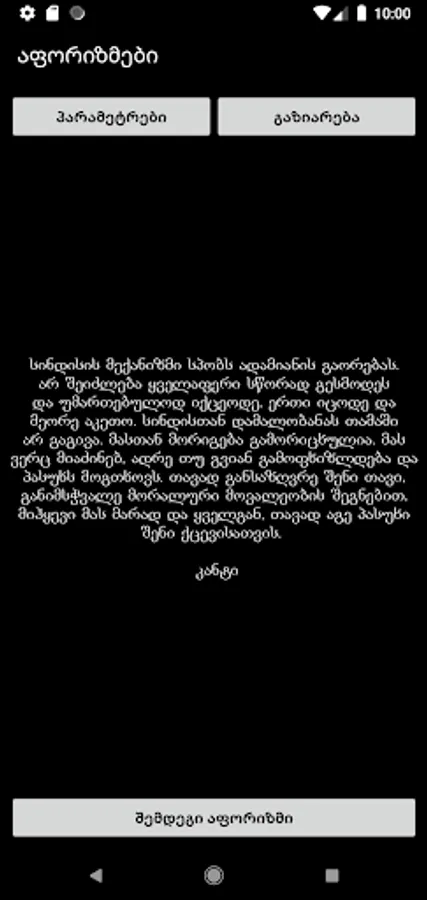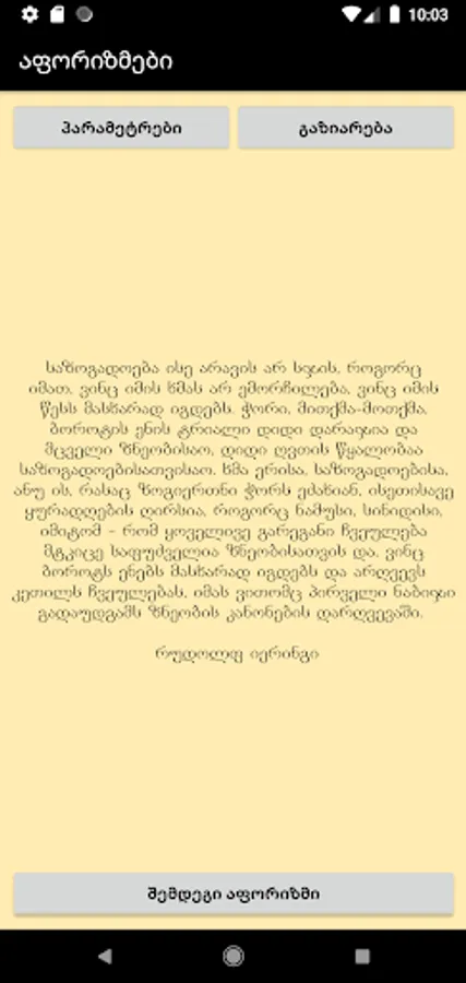 The application allows you to share the aphorism displayed on the screen, you need to click on the share button and specify the desired application.