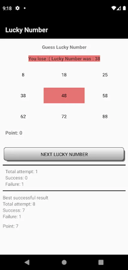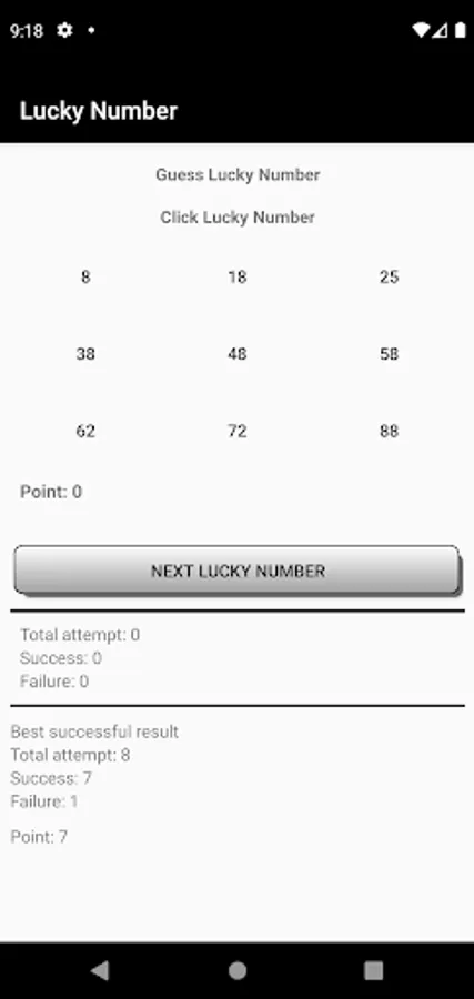 The Game includes a button NEXT LUCKY NUMBER which distributes new random numbers across 9 buttons.