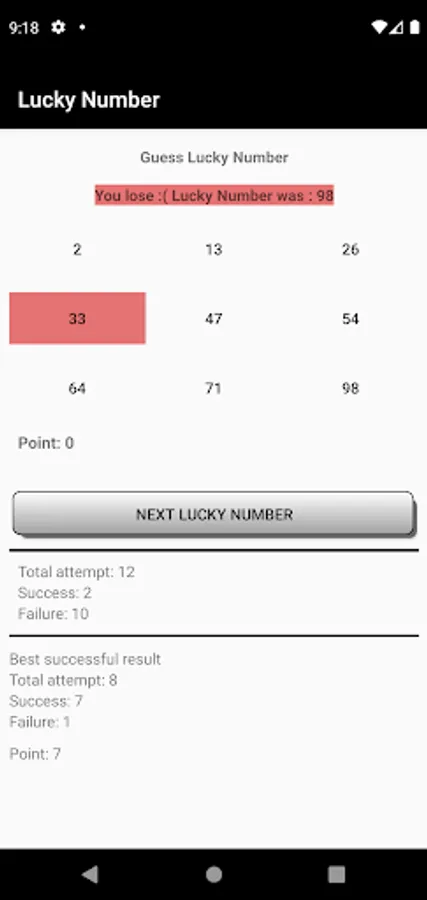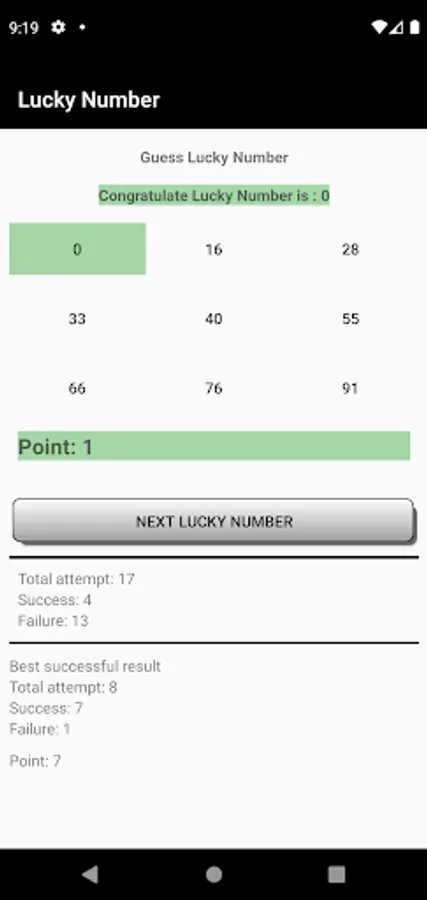 Rule of game is following: guess lucky number which generated randomly background and equal one of the out of nine button.