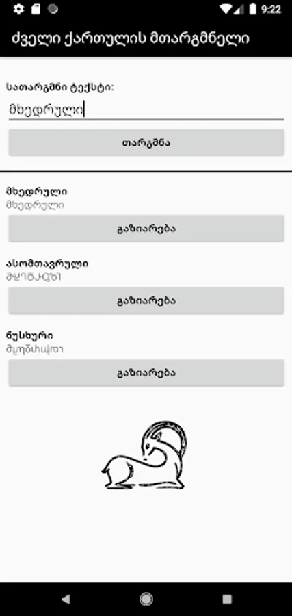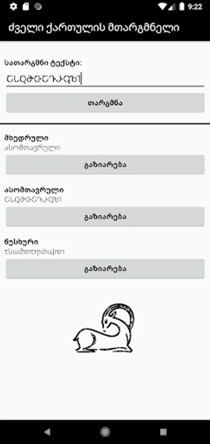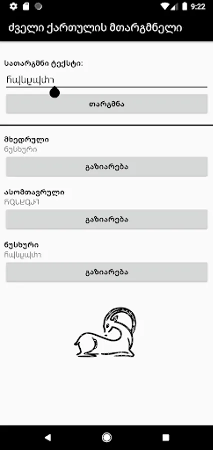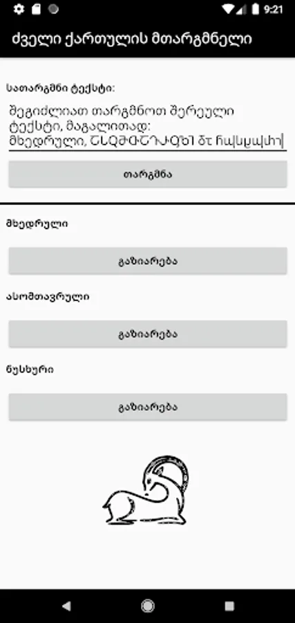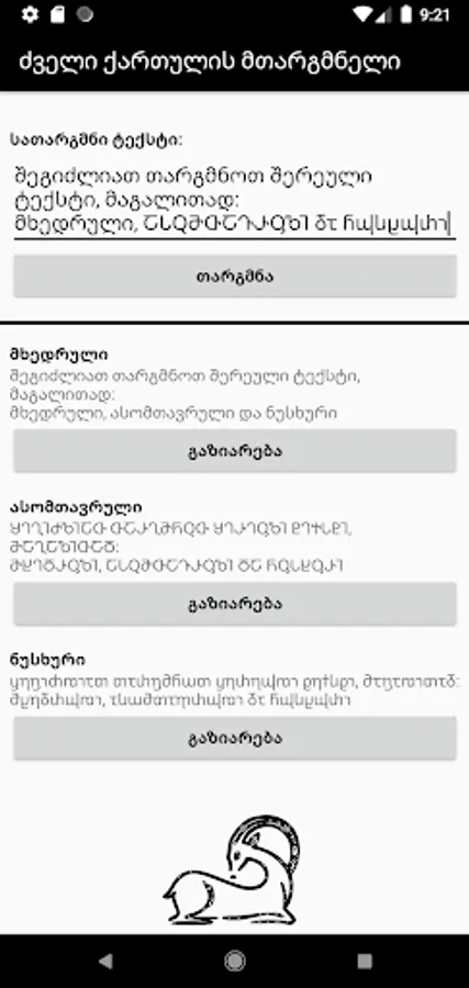 With this universal application, you can translate any amount of text from the old Georgian script to the modern Georgian script and vice versa.