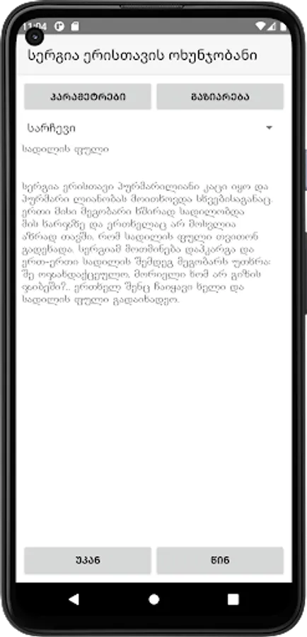 Sergia Eristavi Okhunjobani is a small pamphlet