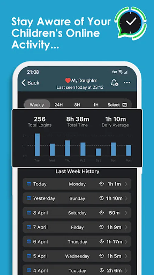 π Detailed Activity Reports: Access online activity graphs to analyze when children are most active on WhatsApp and Telegram. This valuable insight helps maintain a healthy balance between online and offline life, ensuring a secure digital environment for your children.