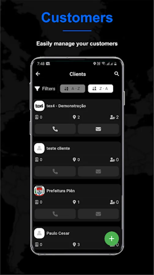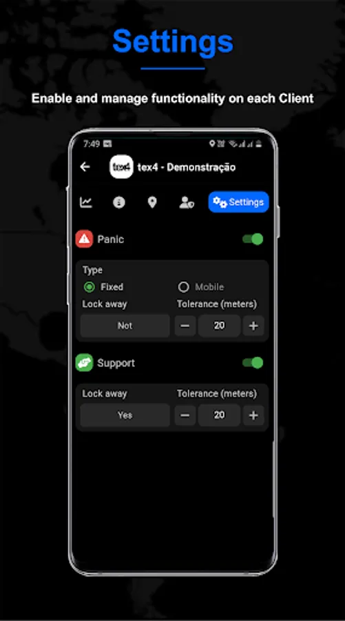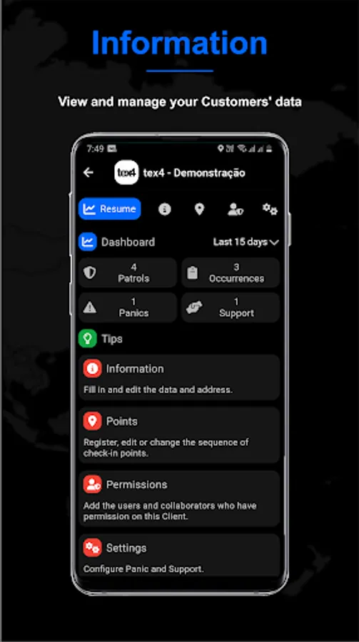 Through tex4 for Companies you can register your customers, check-in points, functionalities, users and collaborators.