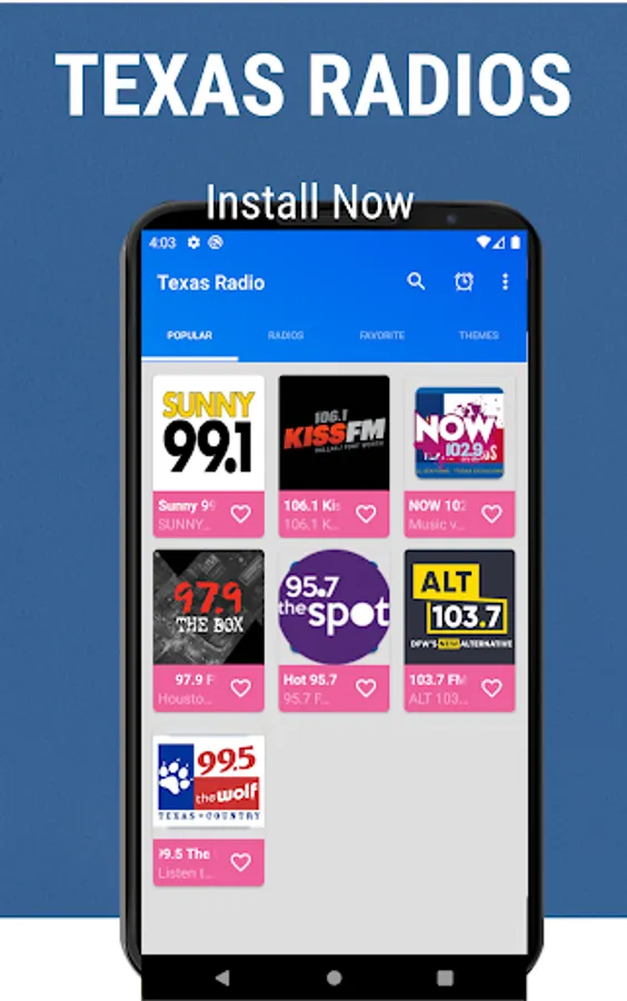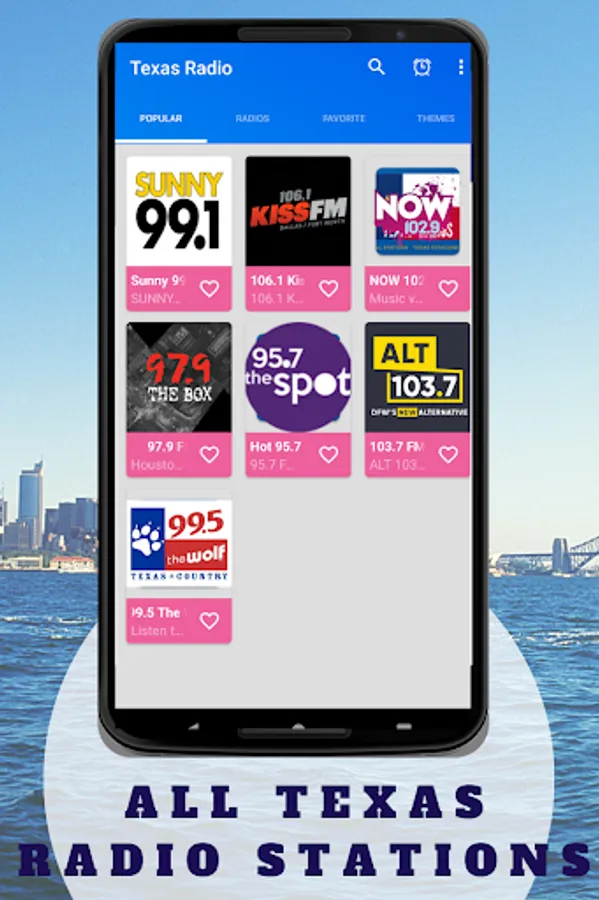All radio stations from Texas if is not in the list you can ask for and we include it, this app include all top popular radios from texas dallas houston austin and other usa radios.