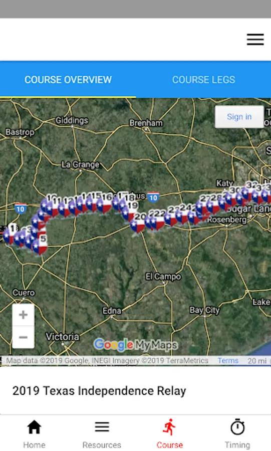 The custom course map is integrated in the app and leg details are available for quick access to phone directions to a leg, runner and driver written directions, and other images.