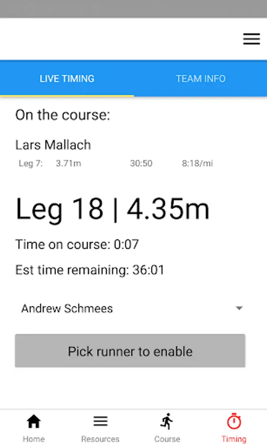 The key feature is a timing screen. View this for up-to-date info on who is running now and a running countdown of when they are expected to finish based on either their registration pace or what they have done so far at TIR.