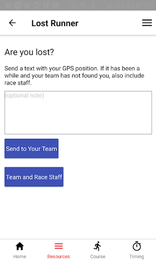 We went a step further this year and have a Lost Runner function so you can text your team, and optionally include race staff, with a GPS link to find you.