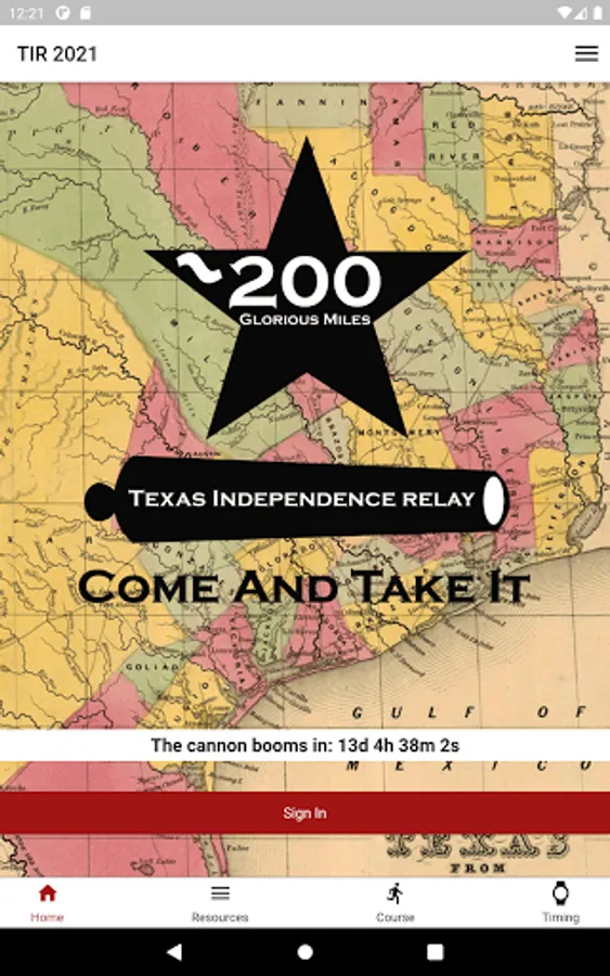 Upgrade your 2021 Texas Independence Relay experience with the TIR 2021 relay app! It has ALL the relay information - maps, directions, driver's tips, leg descriptions, exchange hours, and more! In the timing section, set up your team's running order with best guesses for team member's paces (that you can be changed mid-race!), and you and your team members will be able to see all of the future exchanges predicted arrival times. Come and Take your runners' splits for each leg in the capture tab, and then you'll get to have detailed results in the Actuals tab. For the runner who likes to "geek out" a little bit, this is a must! But TIR 2021 is good for every team member to help keep track, be informed, and be connected!