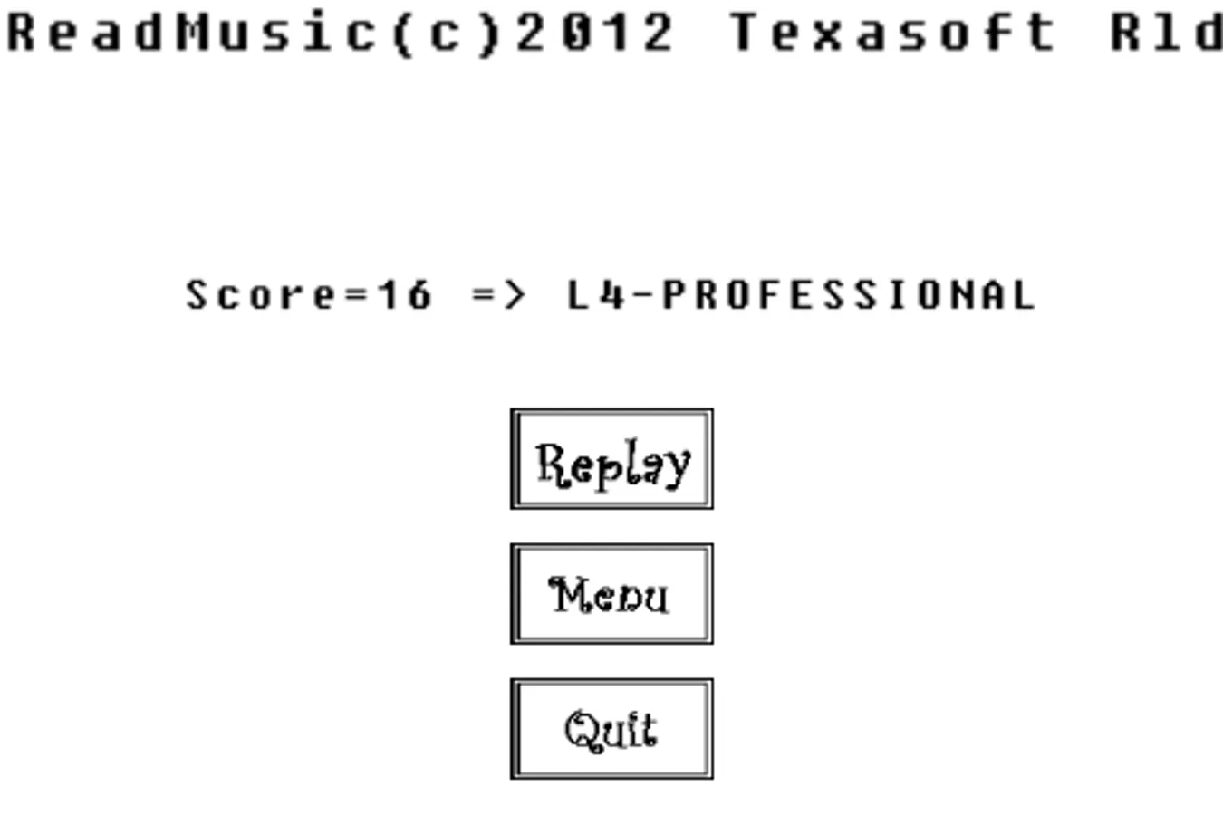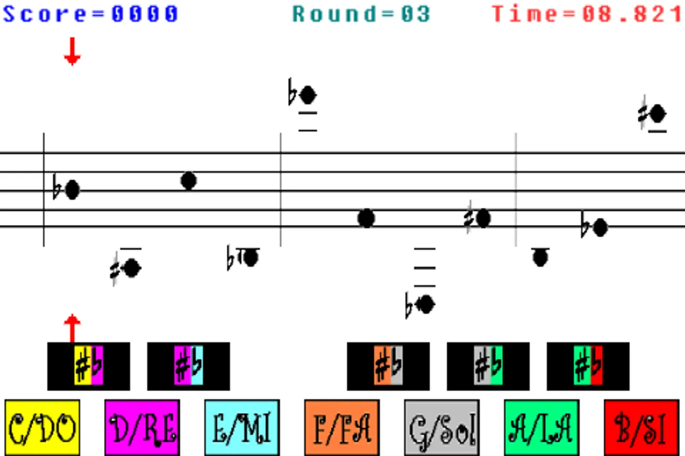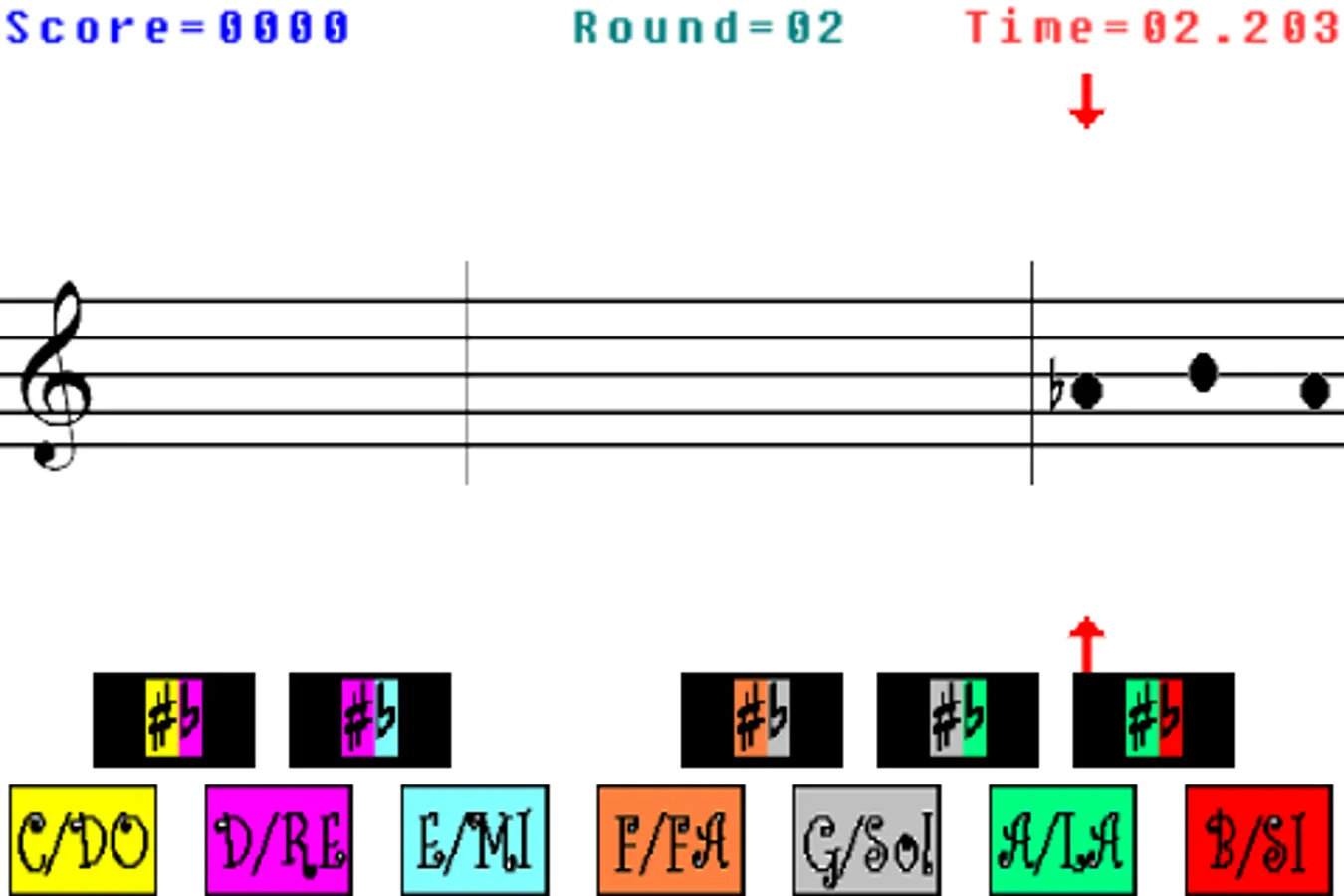 The notes scroll across the screen and you must press the correct button as quickly as possible, before the note exits the screen . The less time you put into it, the more points you accumulate. When the note is altered, you have to push the black button with colored sharp and flat. The color of sharp or flat is the same as the corresponding natural note. At the end of all the rounds, you will receive a numerical score and a qualitative assessment, from beginner grade to maestro grade.