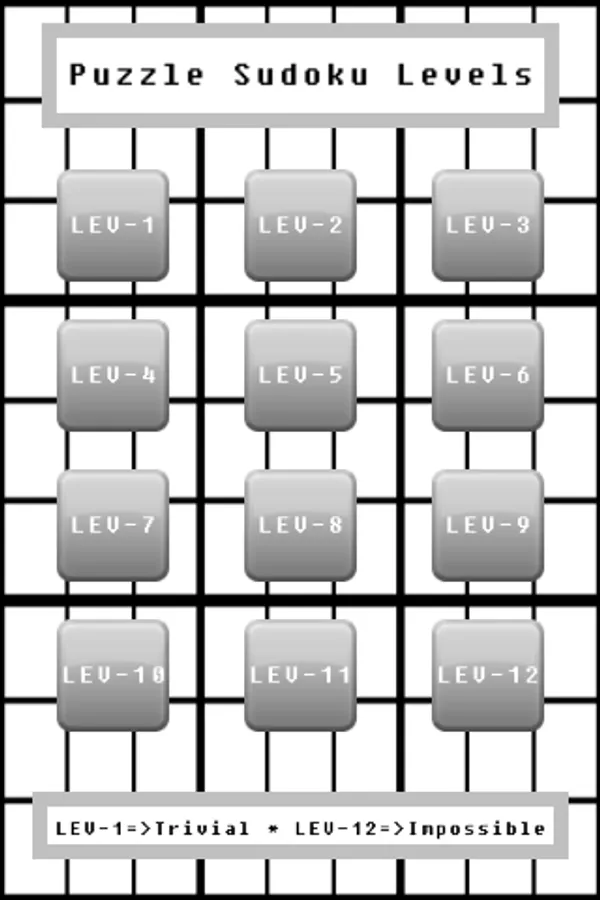You can play the traditional 9x9 Sudoku grid, with 12 levels, from dummy (a lot of fixed digits) to mission impossible (very few fixed digits). You can even save the game (one different save for each level is available) and continue playing the save schema whenever you want. Try to solve the schema faster than you can, and save the time record if you succeed to break it!