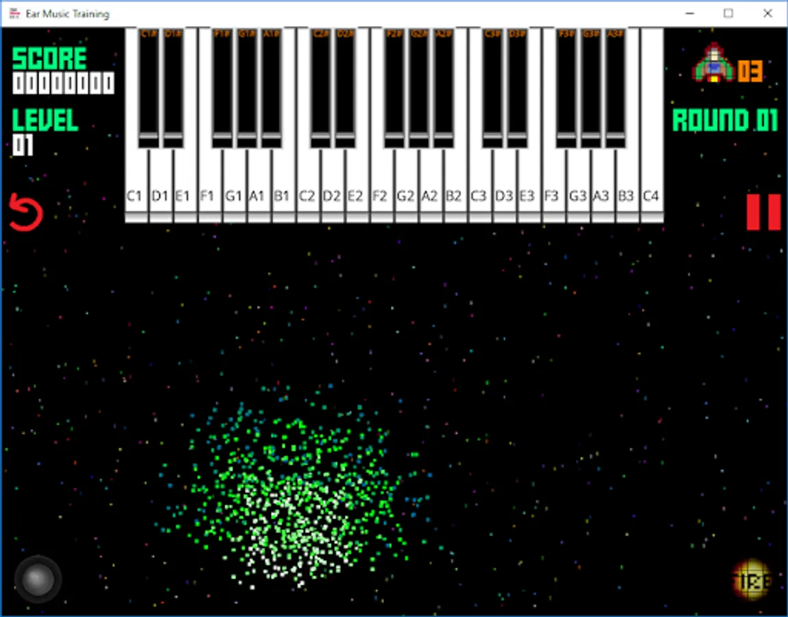 Have you always thought you did not have a musical ear, like me? Do not worry, the musical ear can be educated with exercise, nobody is born out of tune! But the methods to improve listening skills are boring. Nothing better than to practice playing! I present Ear Music Training!, 6 space-style games in which you will pilot a spaceship in pixel art and shoot the notes that correspond to the sound you have heard, using the position on the staff or the virtual piano keyboard to help you, or simply shooting to hordes of notes that rain from space to you. 6 different games, with different levels of difficulty. And in addition you can play two different virtual pianos, one with two octaves and the other with three octaves. Have musical fun!