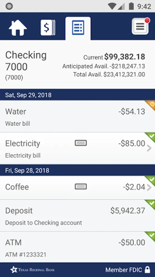 • View recent transactions, including check images