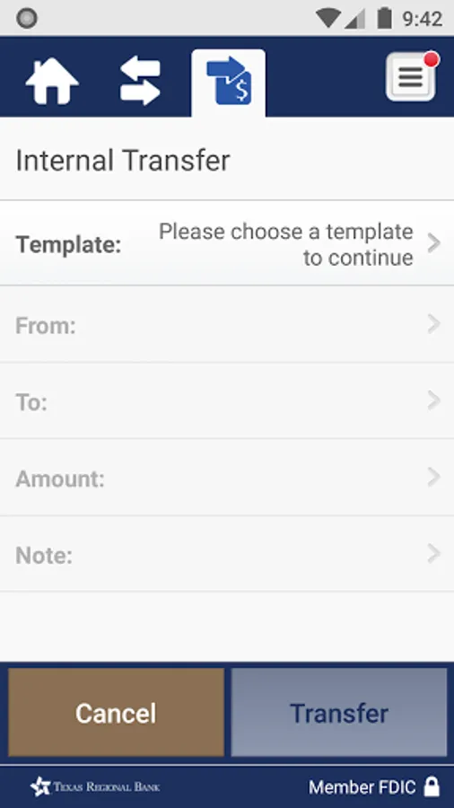 • Transfer funds between your Texas Regional accounts