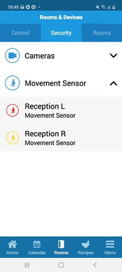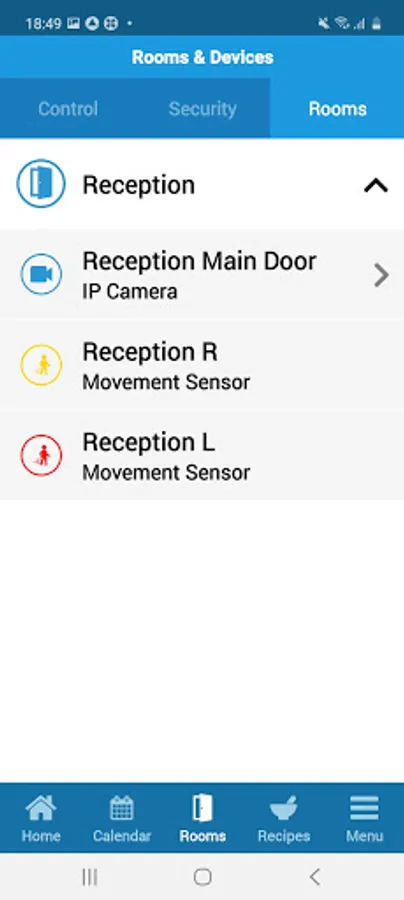 During commissioning of the Texecom Connect App, security alarm devices are mapped into rooms by the security installer, making these devices accessible to the end user for home automation.