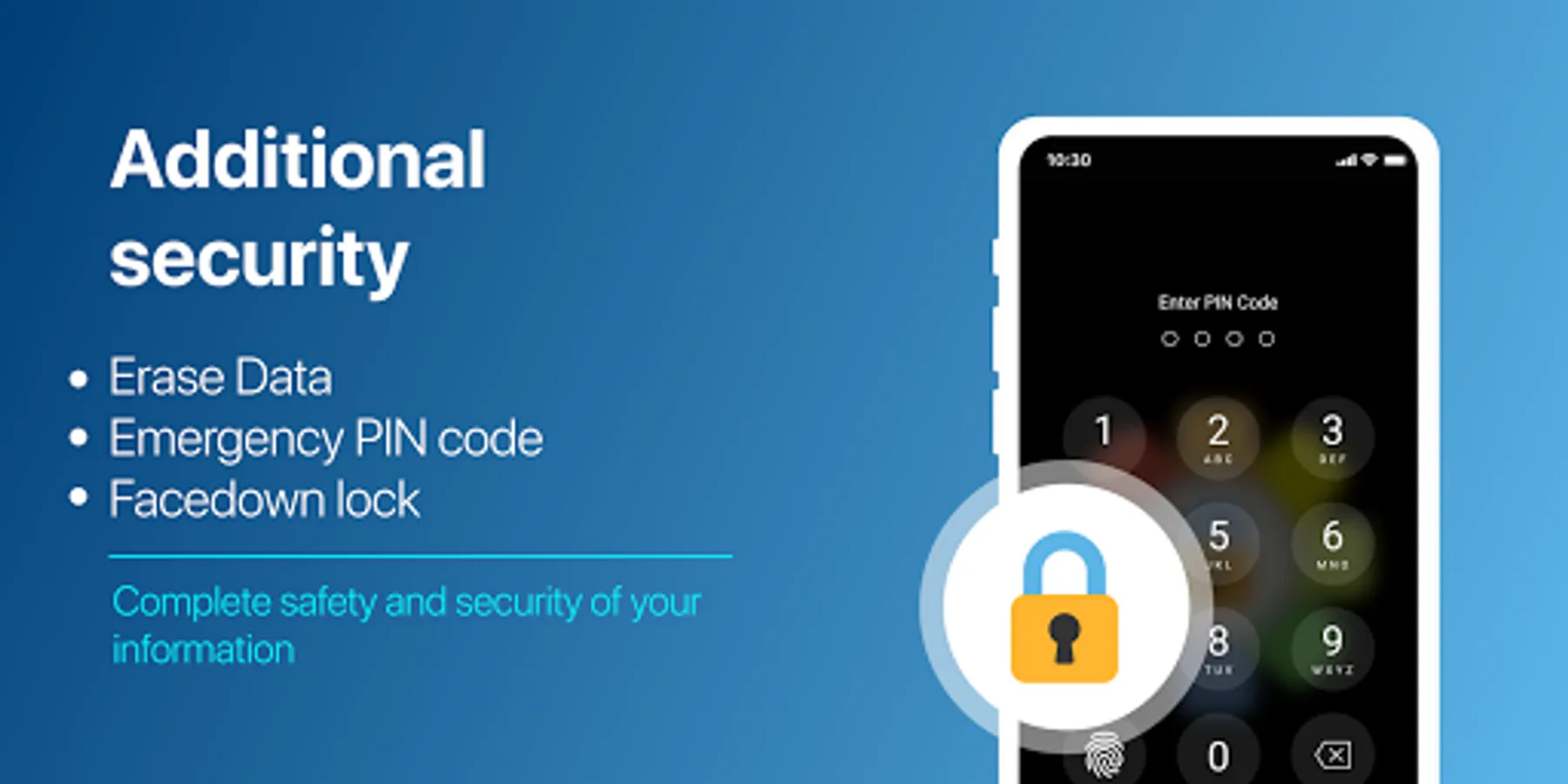 Protecting your data from the curious: access via fingerprint or pin code. Additional functions: Face Down Lock (opening another application of your choice when the screen is rotated), Emergency Pin (entering a code that will delete all your data), deleting data when you enter an incorrect PIN more than 10 times, etc. We won’t be able to get access to your data, even if we really want to. The key is stored only with you and we won’t be able to pick it up, even if you ask us about it. Or not you. Especially if not you.
