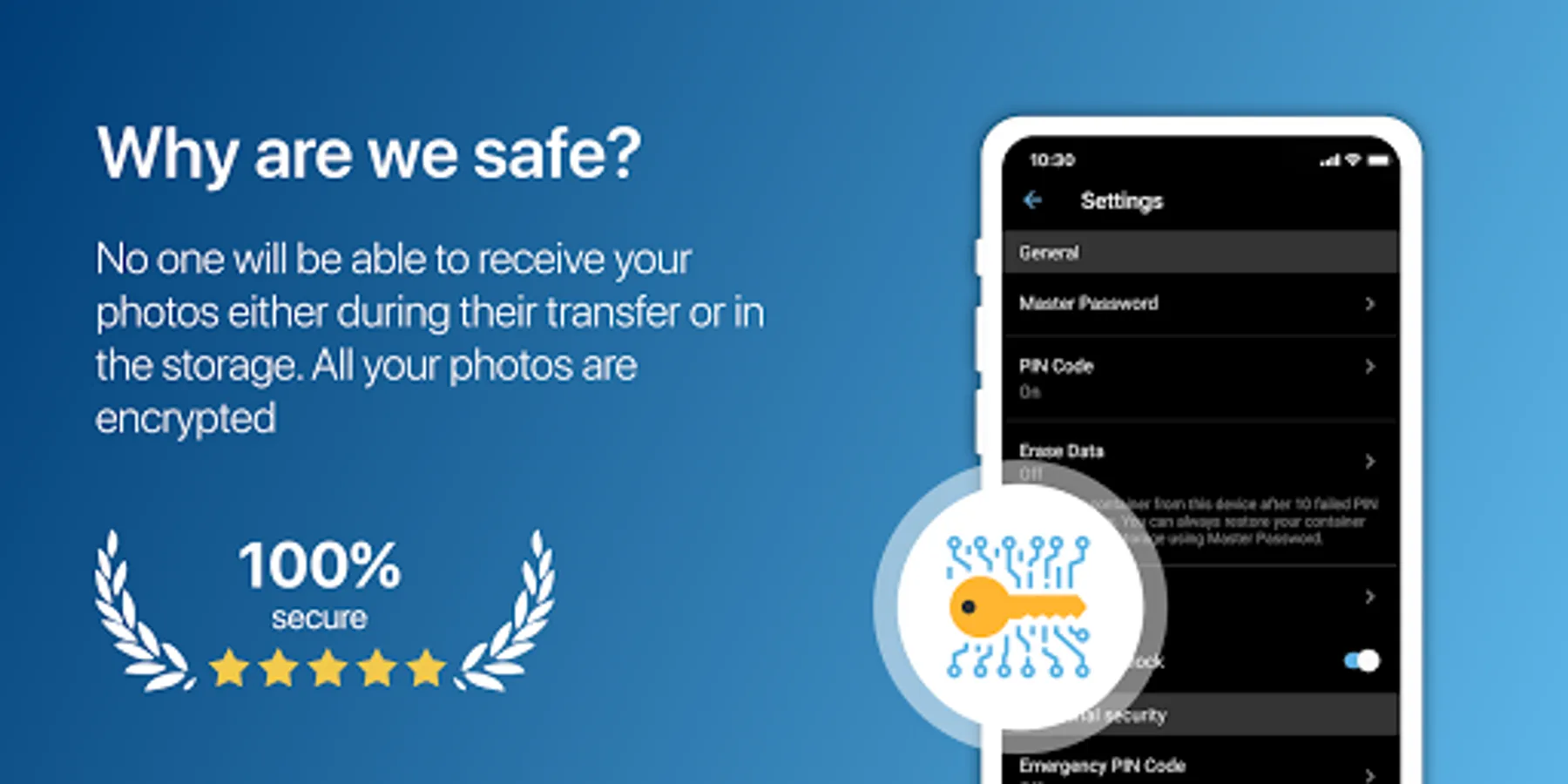 Secure Photo in the free version has no restrictions on the number of photos. Keep your data unlimited.