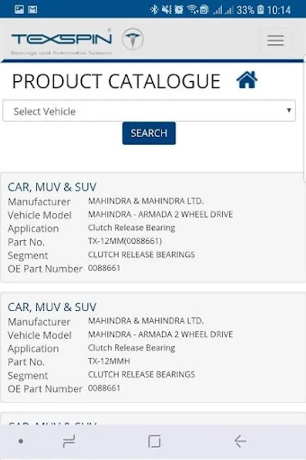 You can access Bearings & Auto component information with Various Vehicle Segment -> Manufacturers -> Parts Detail with Application for all products of Texspin Bearings Ltd.